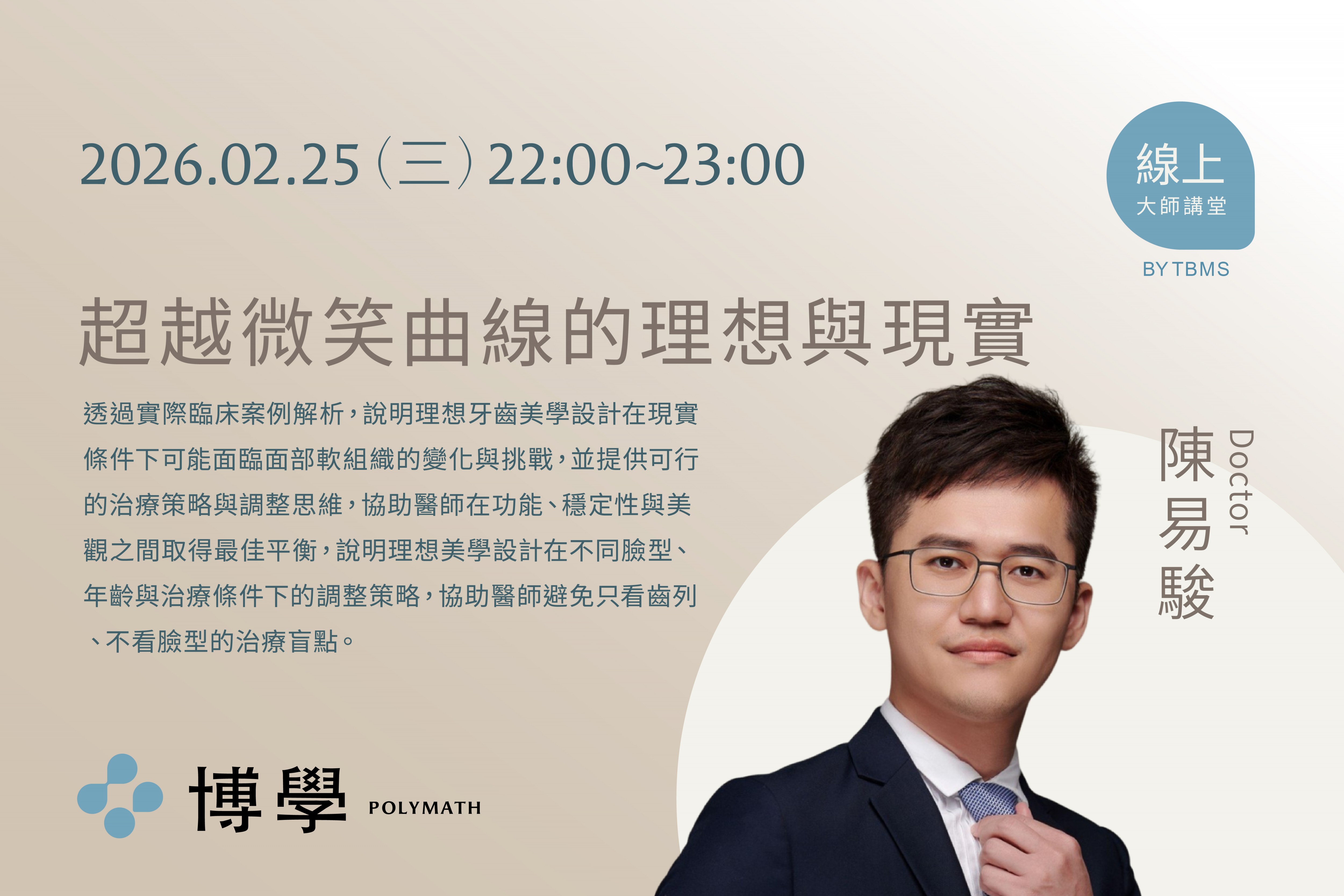 透過實際臨床案例解析,說明理想牙齒美學設計在現實條件下可能面臨面部軟組織的變化與挑戰,並提供可行的治療策略與調整思維,協助醫師在功能、穩定性與美觀之間取得最佳平衡,說明理想美學設計在不同臉型、年齡與治療條件下的調整策略,協助醫師避免只看齒列、不看臉型的治療盲點。
