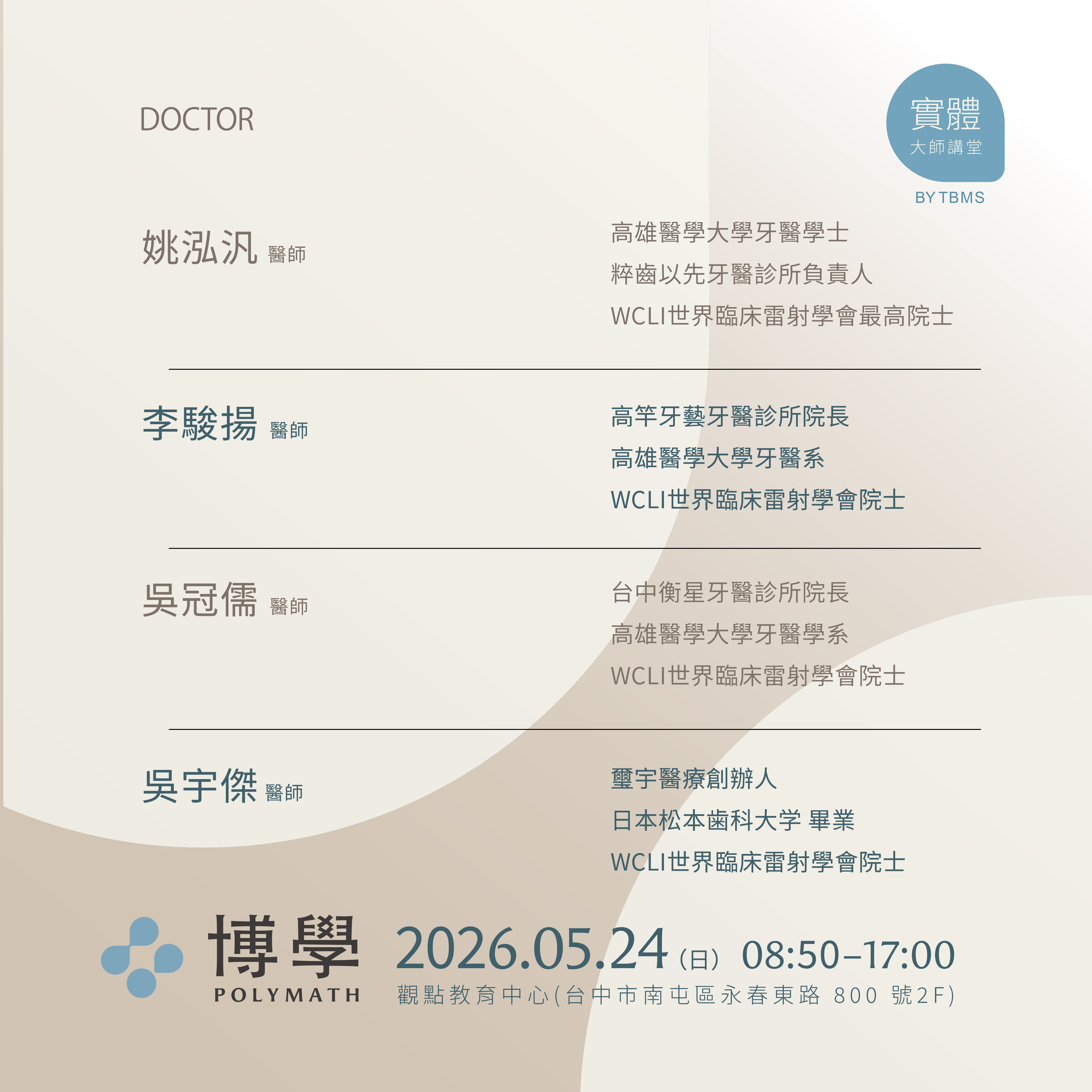 講師:李駿揚、吳冠儒、 吳宇傑、姚泓汎醫師