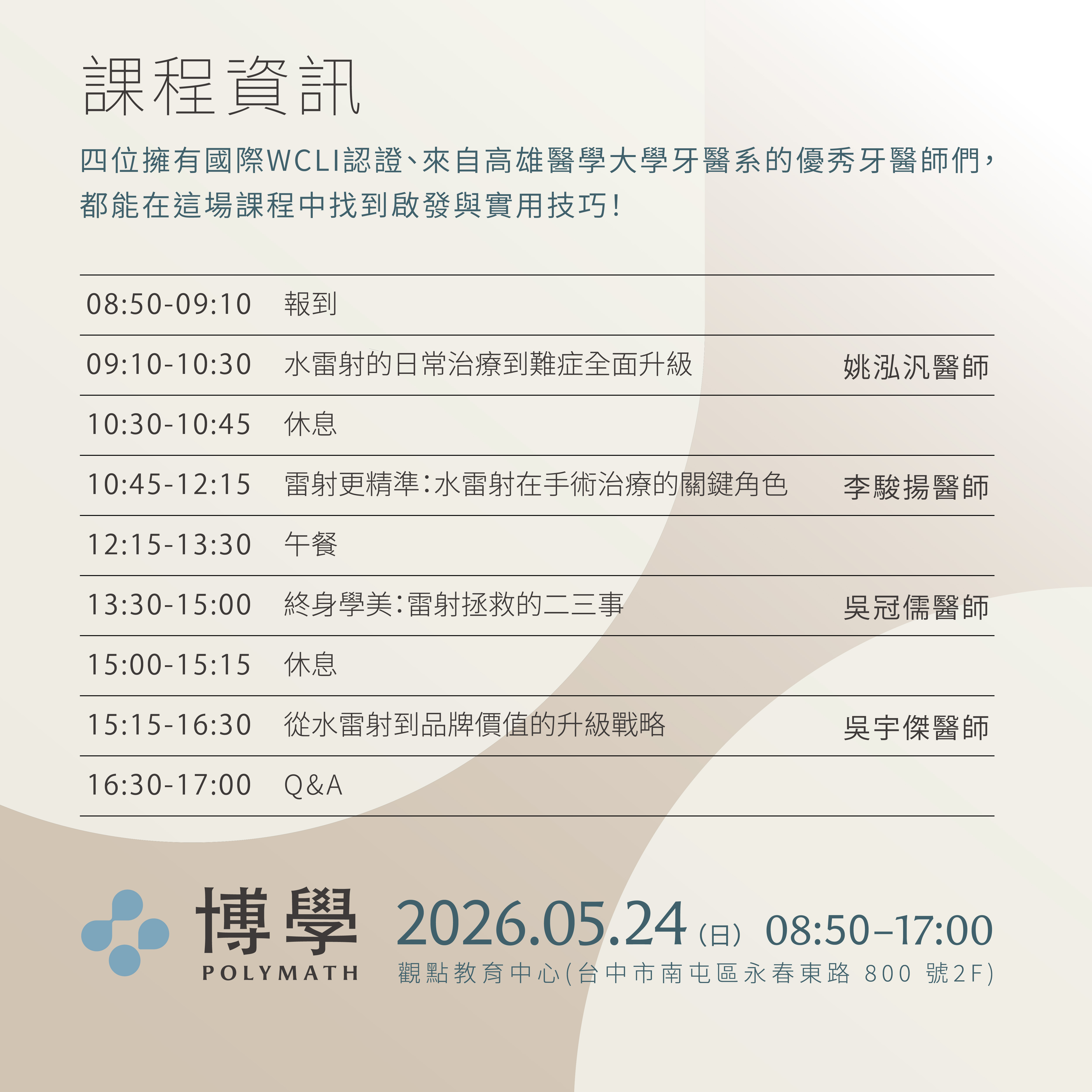 無論你是水雷射新手或進階使用者,都能在這場課程中找到啟發與實用技巧!