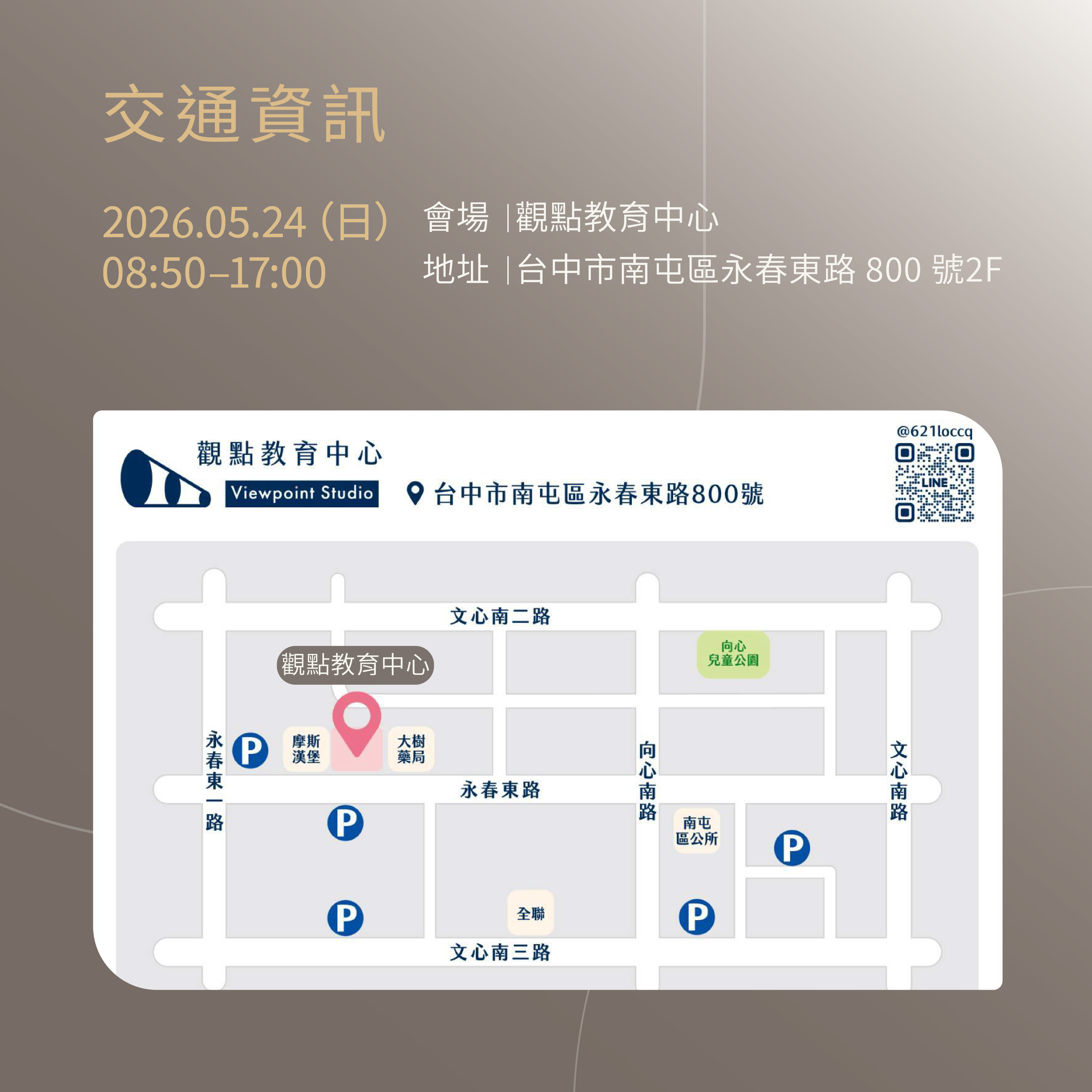 地點:觀點教育中心 台中市南屯區永春東路 800 號2F